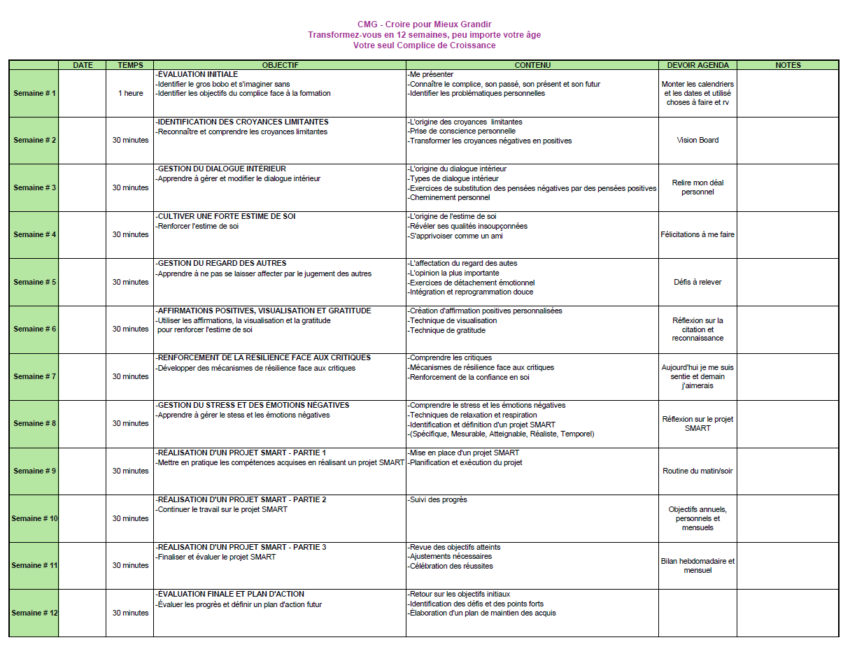 - Terminer avec une évaluation finale et un plan d’action béton!